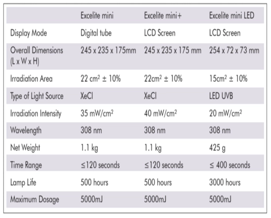 All Excelite Mini Handheld Excimer units come two treatment modes, timer or dosimetry.