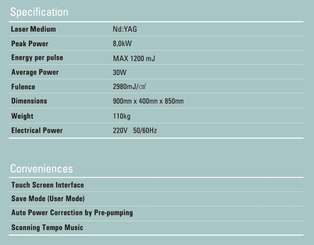 Emits high-peak power (8000W/) for a short on time. Provides enough thermal relaxation time for the tissue due to a long off time. Delivers high energy to deep area that can not be reached in CW or CW on-off mode.