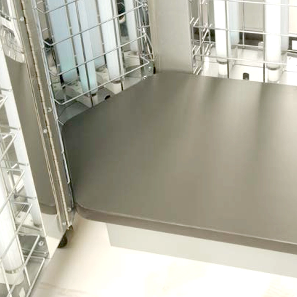 • A platform elevates the patient to the height of the lamps for optimum treatment of the lower legs.